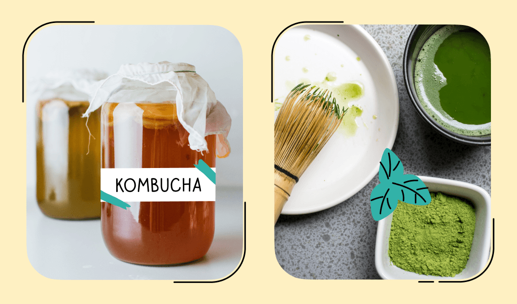 Start QuizIt's fermented probiotic tea is made from brewed tea, sugar and a symbiotic colony of bacteria and yeast (SCOBY). Natural bacteria produce in tea enzymes, vitamins and amino acids. Kombucha may boost not only your energy level but also has a detox effect.